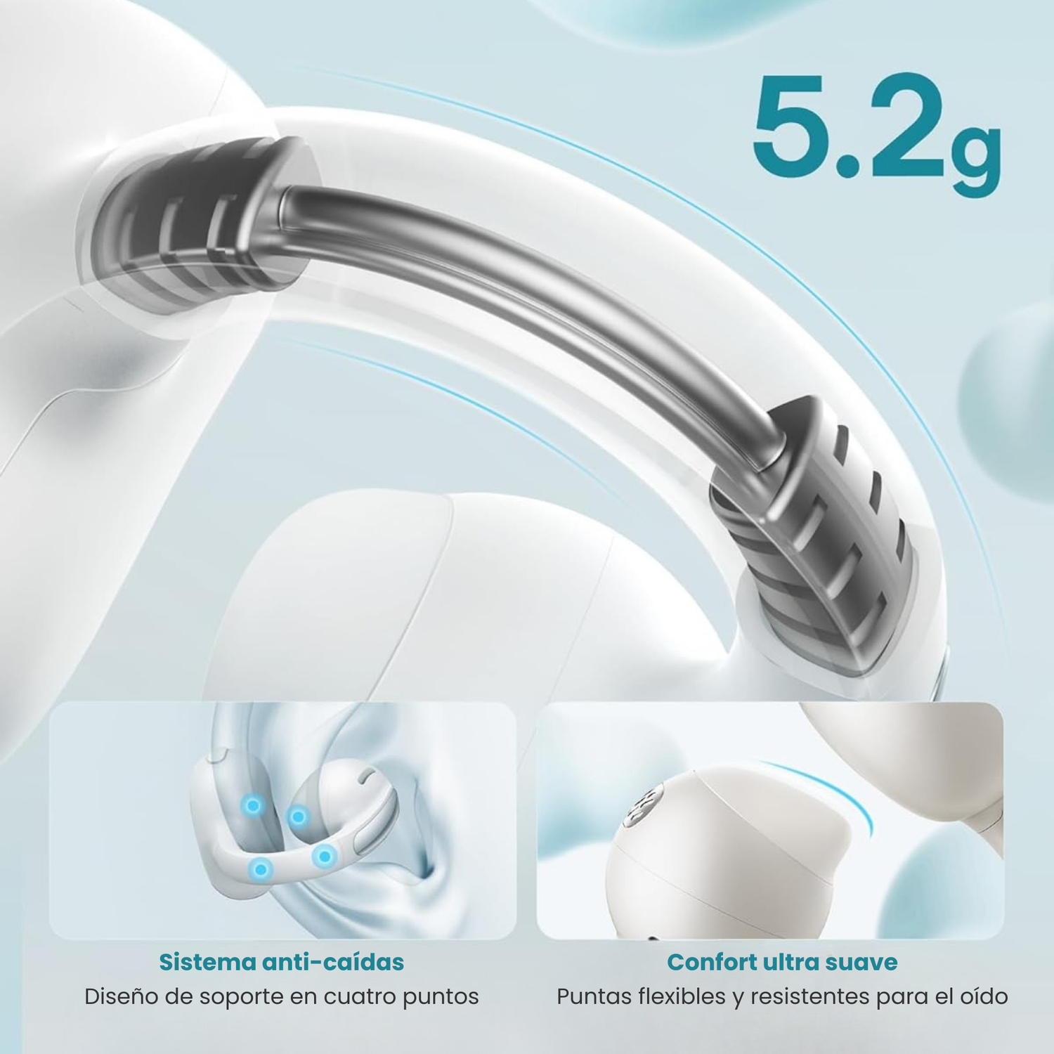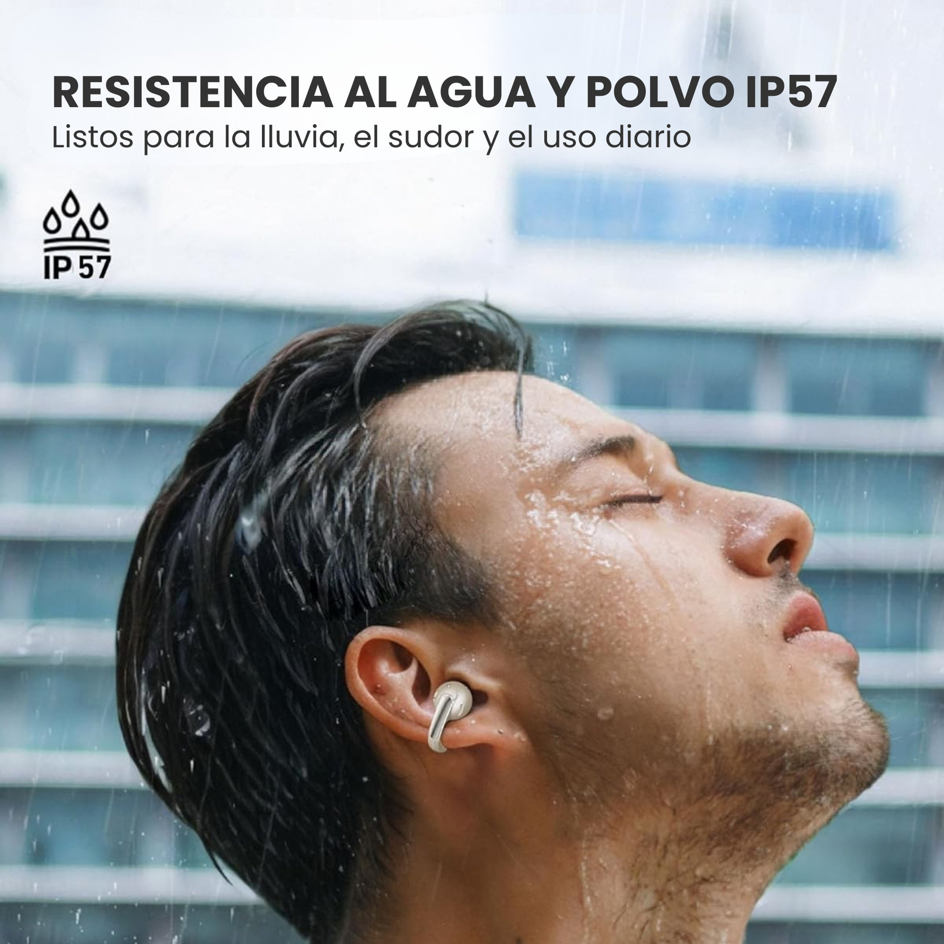 El sistema de clip evita la presión dentro del oído y se adapta de forma natural. Ultraligeros y cómodos incluso tras horas de uso continuo.